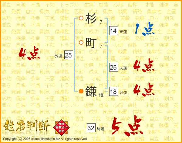 杉町鎌さんの人運は25画の4点!