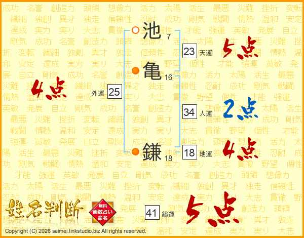 池亀鎌さんの総運は41画の5点!
