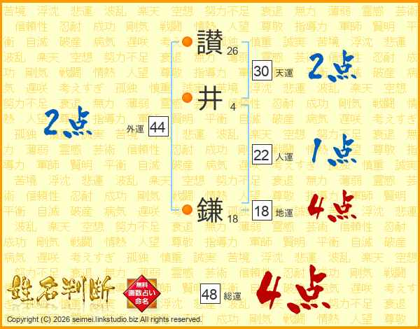 讃井鎌さんの総運は48画の4点!