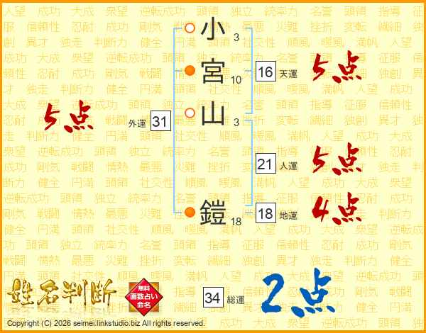 小宮山鎧さんの総運は34画の2点!