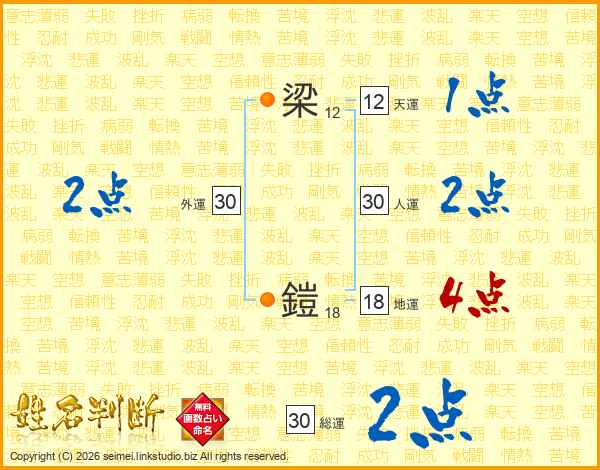 梁鎧さんの総運は30画の2点!