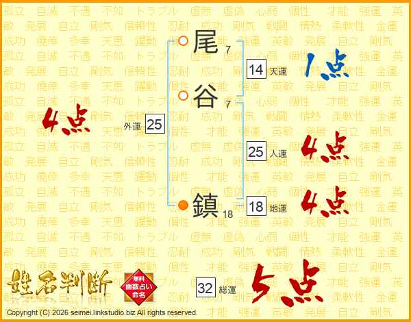 尾谷鎮さんの総運は32画の5点!