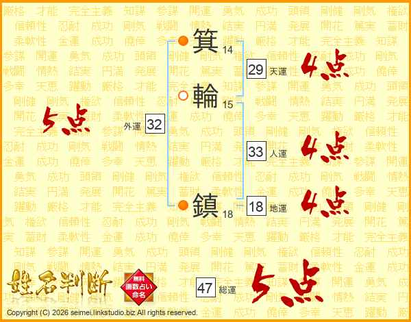 箕輪鎮さんの総運は47画の5点!