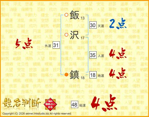 飯沢鎮さんの総運は48画の4点!
