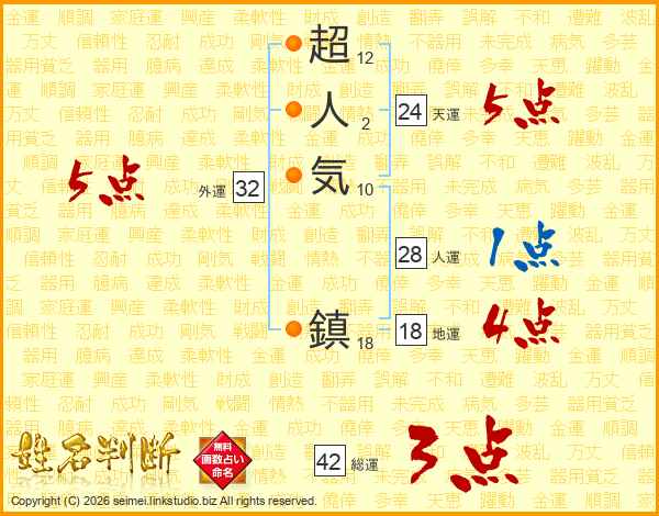 超人気鎮さんの総運は42画の3点