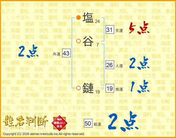 塩谷鏈さんの総運は50画の2点!