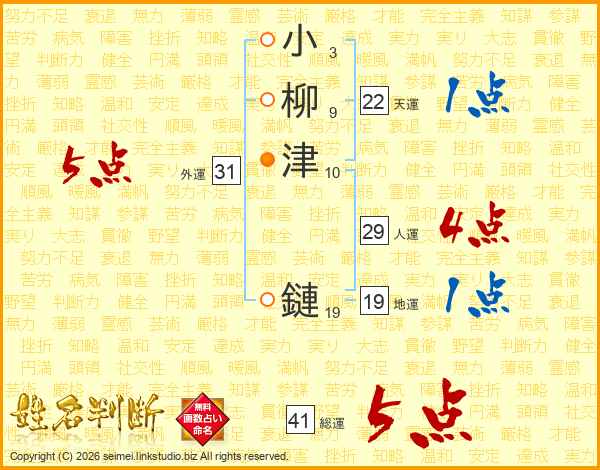 小柳津鏈さんの総運は41画の5点!