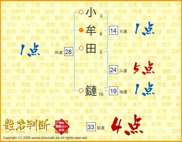 小牟田鏈さんの総運は33画の4点!