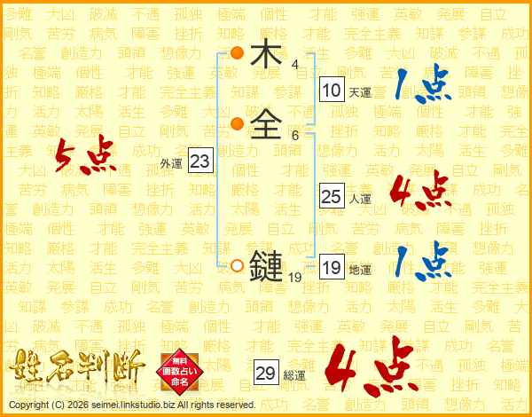 木全鏈さんの総運は29画の4点!