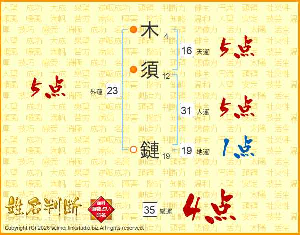 木須鏈さんの人運は31画の5点!
