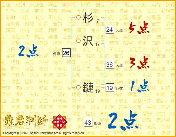 杉沢鏈さんの総運は43画の2点!