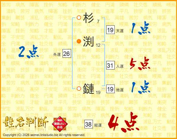 杉渕鏈さんの総運は38画の4点!