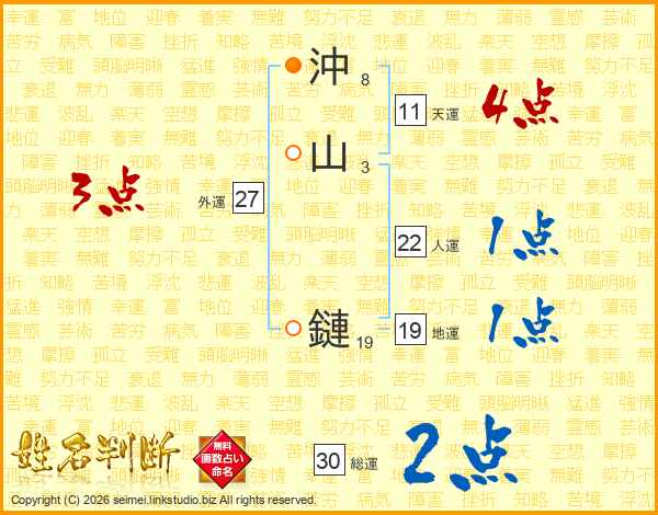 沖山鏈さんの天運は11画の4点!