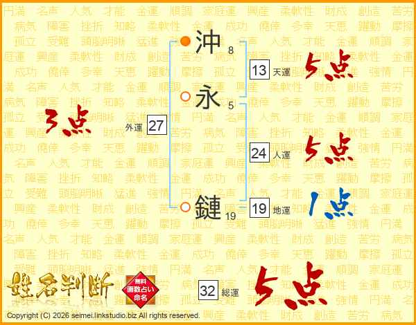 沖永鏈さんの総運は32画の5点!