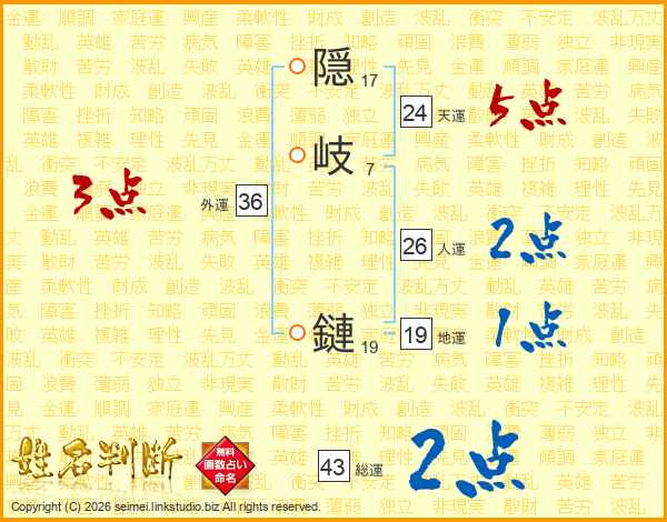 隠岐鏈さんの人運は26画の2点!
