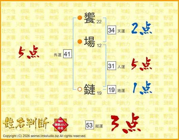 饗場鏈さんの総運は53画の3点!