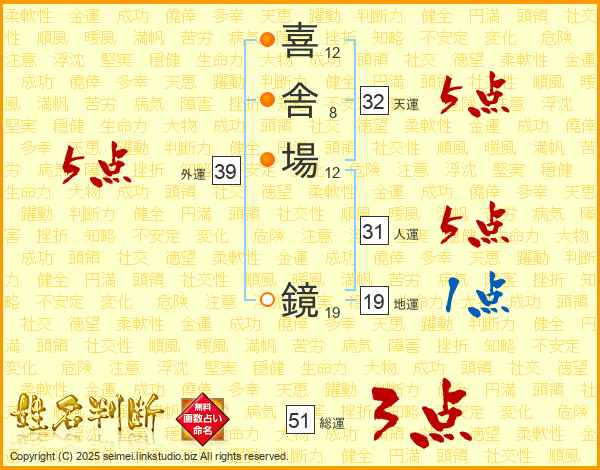 喜(12画)舎(8画)場(12画) 鏡(19画)