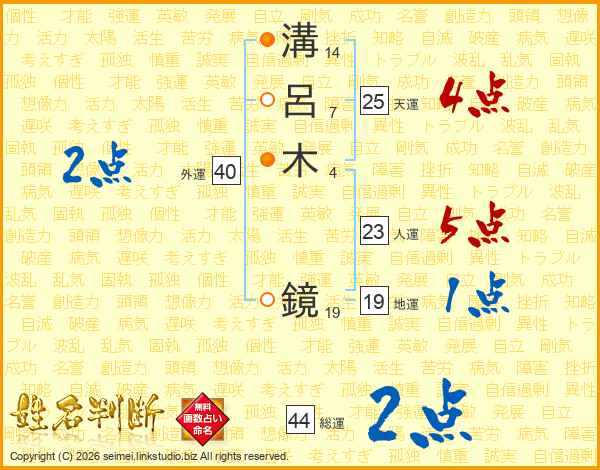 溝呂木鏡さんの総運は44画の2点!