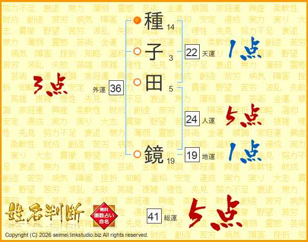 種子田鏡さんの総運は41画の5点!