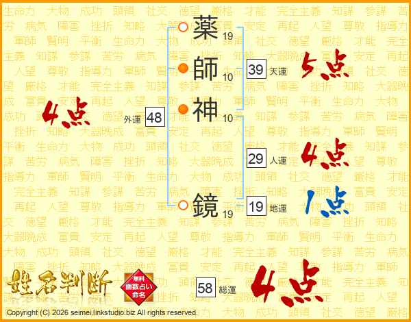 薬師神鏡さんの総運は58画の4点!