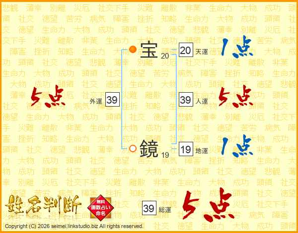 宝鏡さんの総運は39画の5点!