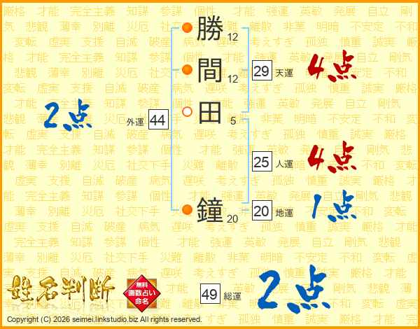 勝間田鐘さんの天運は29画の4点!