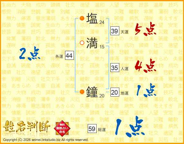 塩満鐘さんの総運は59画の1点!