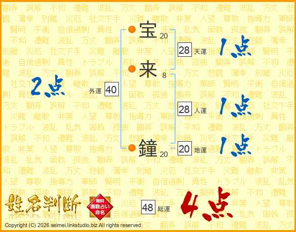宝来鐘さんの総運は48画の4点!