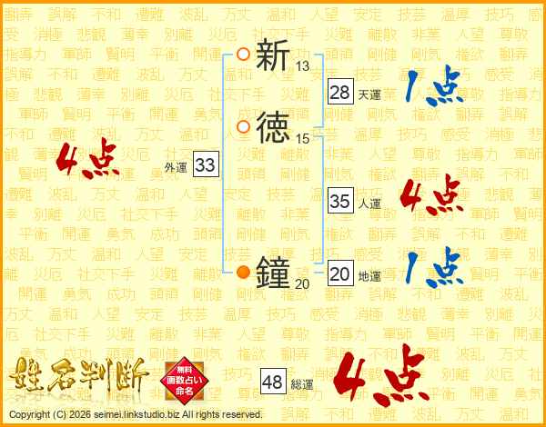 新徳鐘さんの総運は48画の4点!