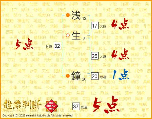浅生鐘さんの総運は37画の5点!