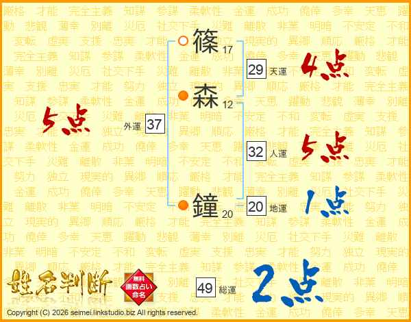 篠森鐘さんの総運は49画の2点!