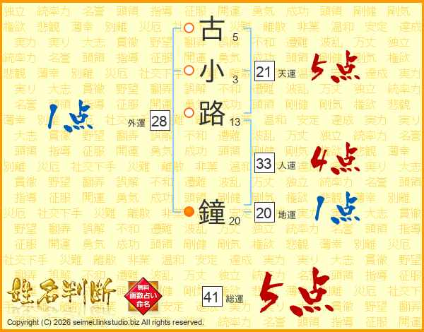 古小路鐘さんの総運は41画の5点