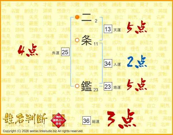 二条鑑さんの総運は36画の3点!
