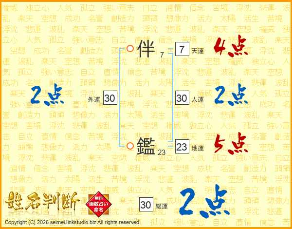 伴鑑さんの天運は7画の4点!