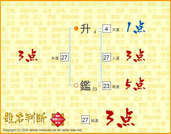 升鑑さんの総運は27画の3点!