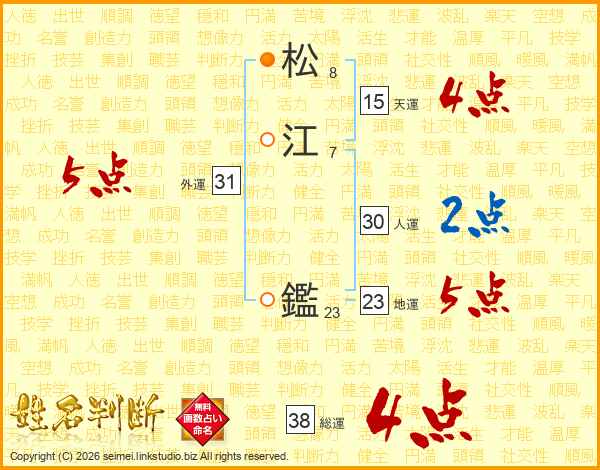 松江鑑さんの総運は38画の4点!