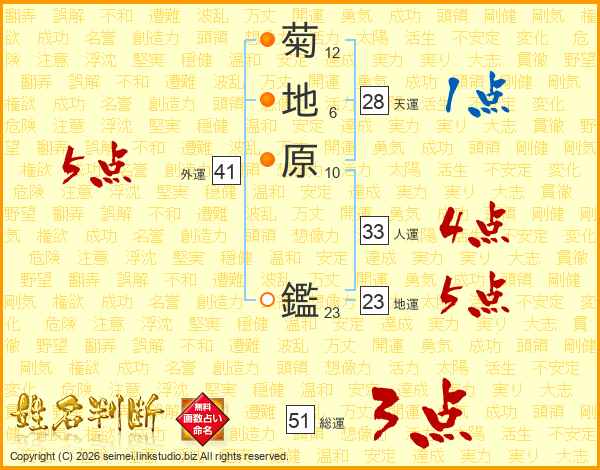 菊地原鑑さんの総運は51画の3点!