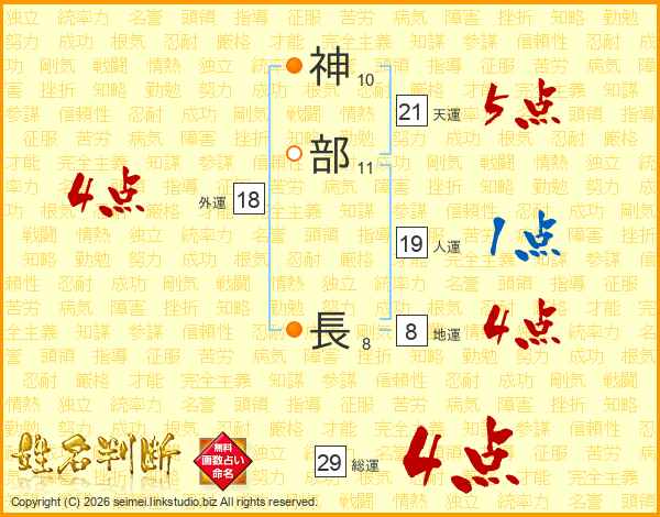 神部長さんの天運は21画の5点!