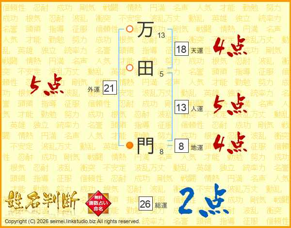 万田門さんの総運は26画の2点!