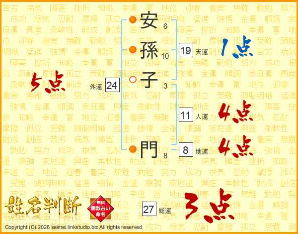 安孫子門さんの総運は27画の3点!