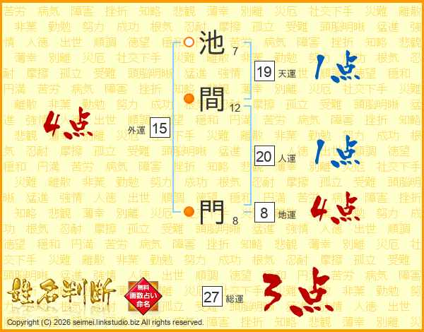 池間門さんの総運は27画の3点!