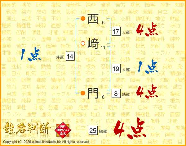 西﨑門さんの天運は17画の4点!