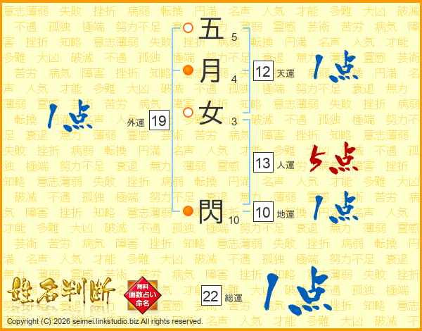 五月女閃さんの総運は22画の1点!