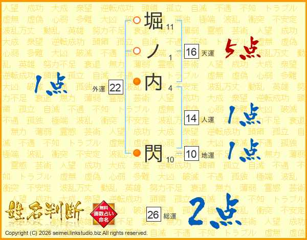 堀(11画)ノ(1画)内(4画) 閃(10画)