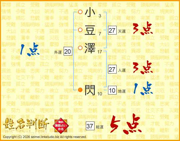 小(3画)豆(7画)澤(17画) 閃(10画)