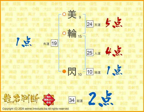 美(9画)輪(15画) 閃(10画)