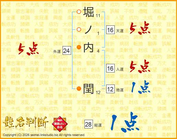 堀ノ内閏さんの総運は28画の1点!