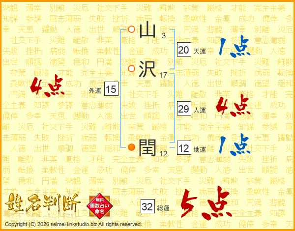 山沢閏さんの総運は32画の5点!