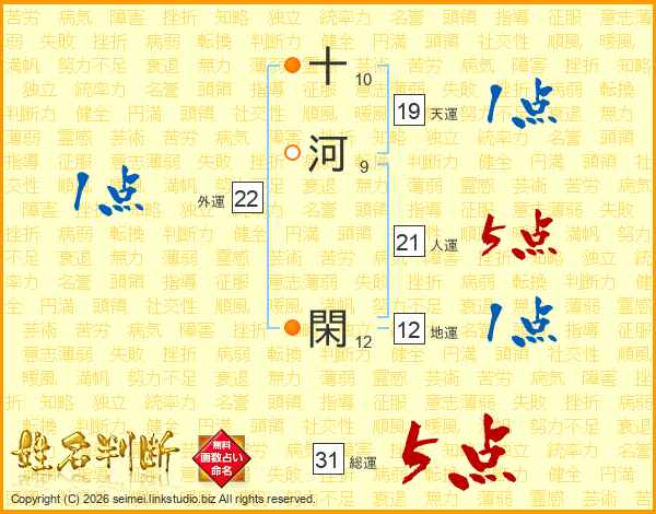 十河閑さんの総運は31画の5点!
