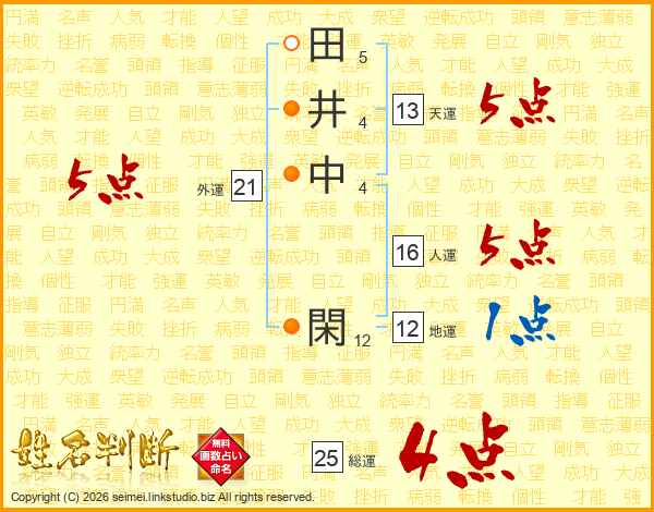 田井中閑さんの総運は25画の4点!